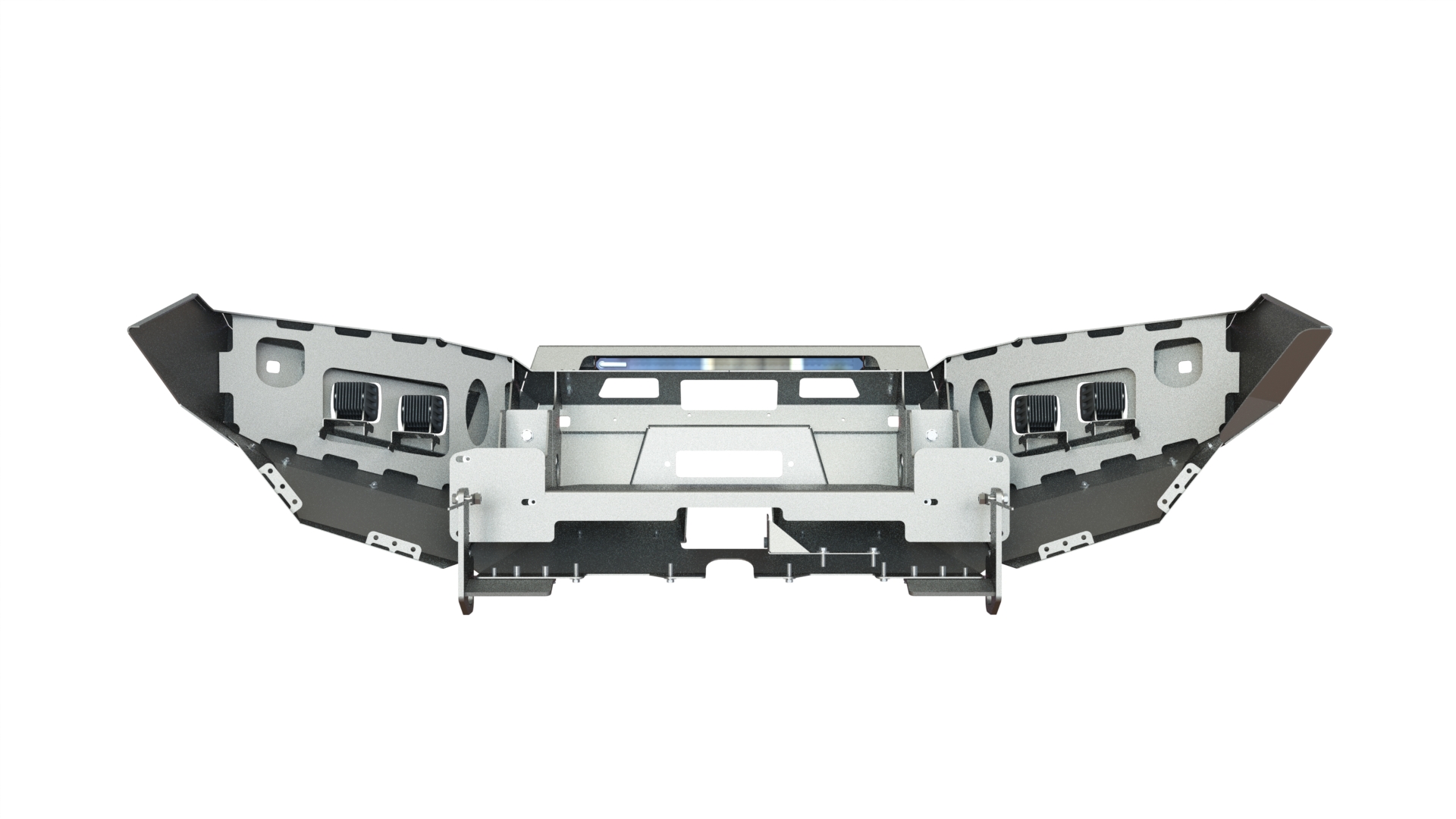 Бампер оснащен мощными упорами под реечный домкрат и буксирными проушинами для работы с рывковой или буксировочной стропой. Тщательно продуманная конструкция внутренних усилителей обеспечивают максимальную надежность бампера, стойкость к высоким нагрузкам и сильным ударам.