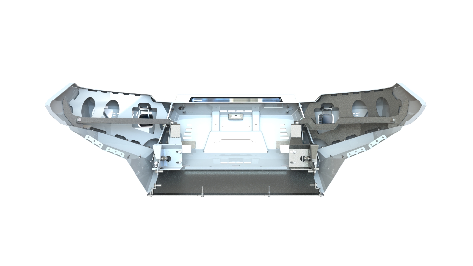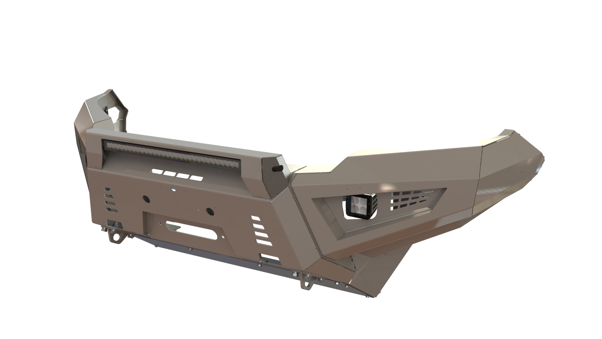 Бампер оснащен мощными упорами под реечный домкрат и буксирными проушинами для работы с рывковой или буксировочной стропой. Тщательно продуманная конструкция внутренних усилителей обеспечивают максимальную надежность бампера, стойкость к высоким нагрузкам и сильным ударам.