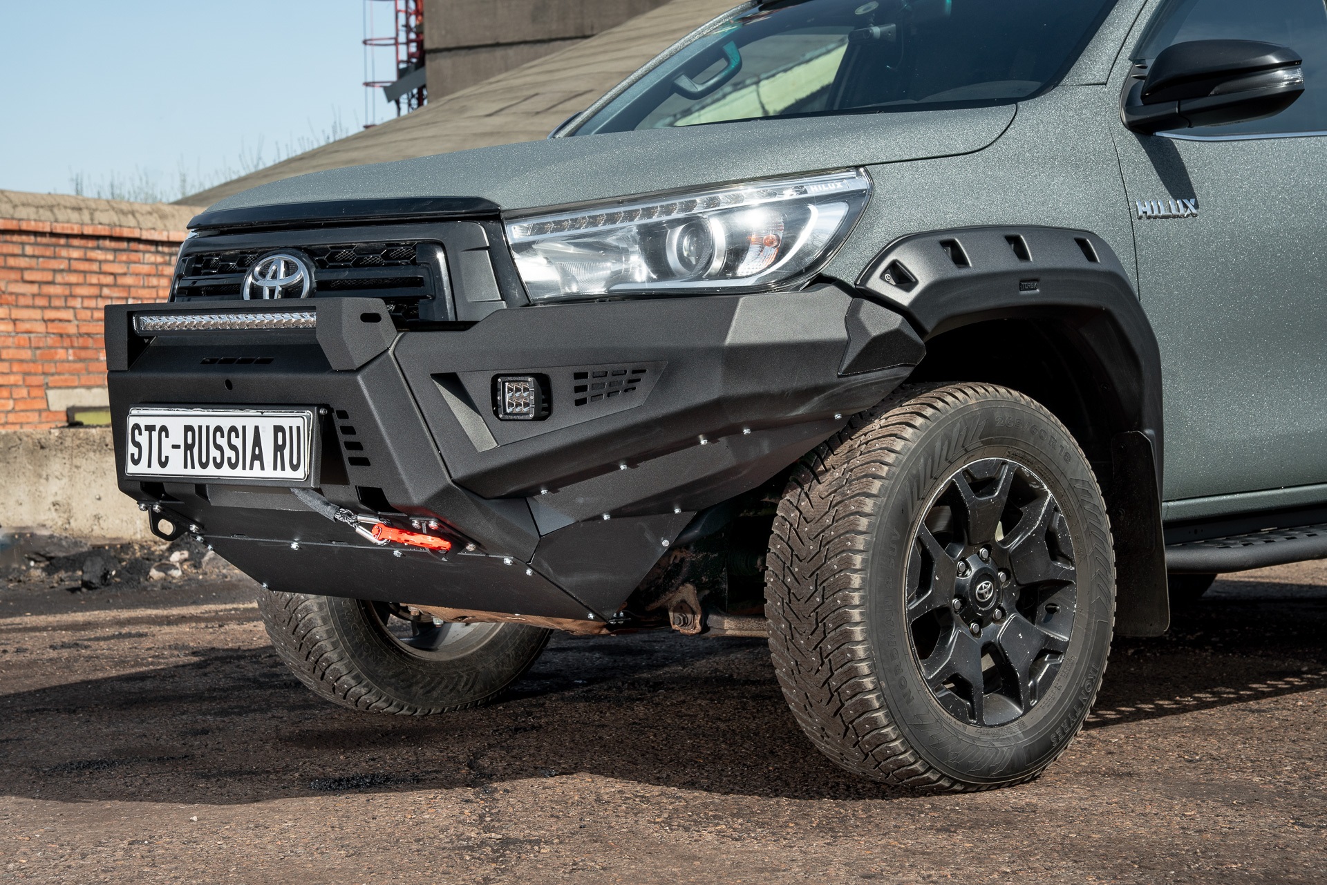 КОМПЛЕКТ 2: Бампер силовой передний STC Toyota Hilux 2017-2020 с противотуманными фарами СТГ и 2-х цветной балкой дальнего света