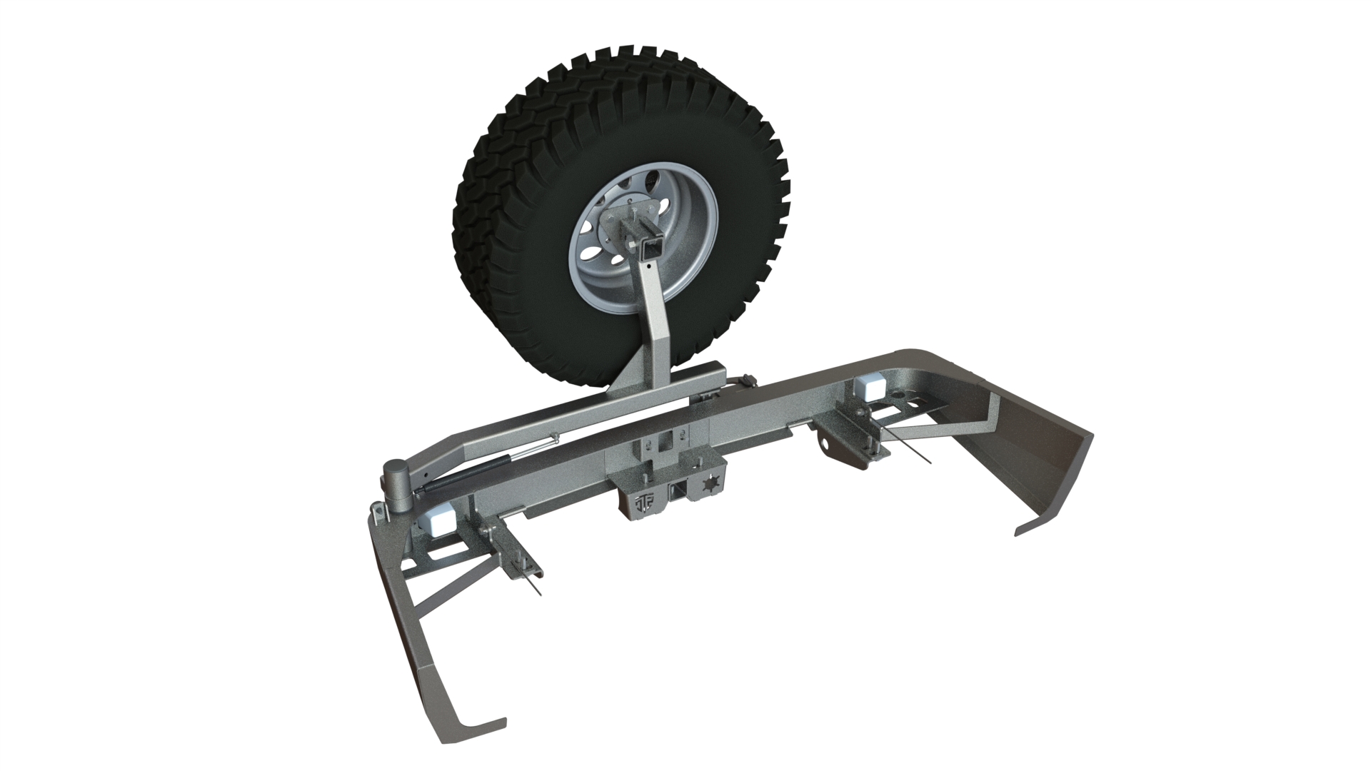 Калитка представляет собой конструкцию из квадратной трубы 60 мм и стенкой 4 мм, способную выдержать вес больших колес без каких-либо деформаций (35×12,5 R17 – гарантированно). Калитка оснащена надежным замком, способным выдержать вибрации и тряску и исключающим самопроизвольное открывание во время движения. Газовый упор облегчает ее открывание и удерживает калитку в открытом положении когда машина стоит под углом.