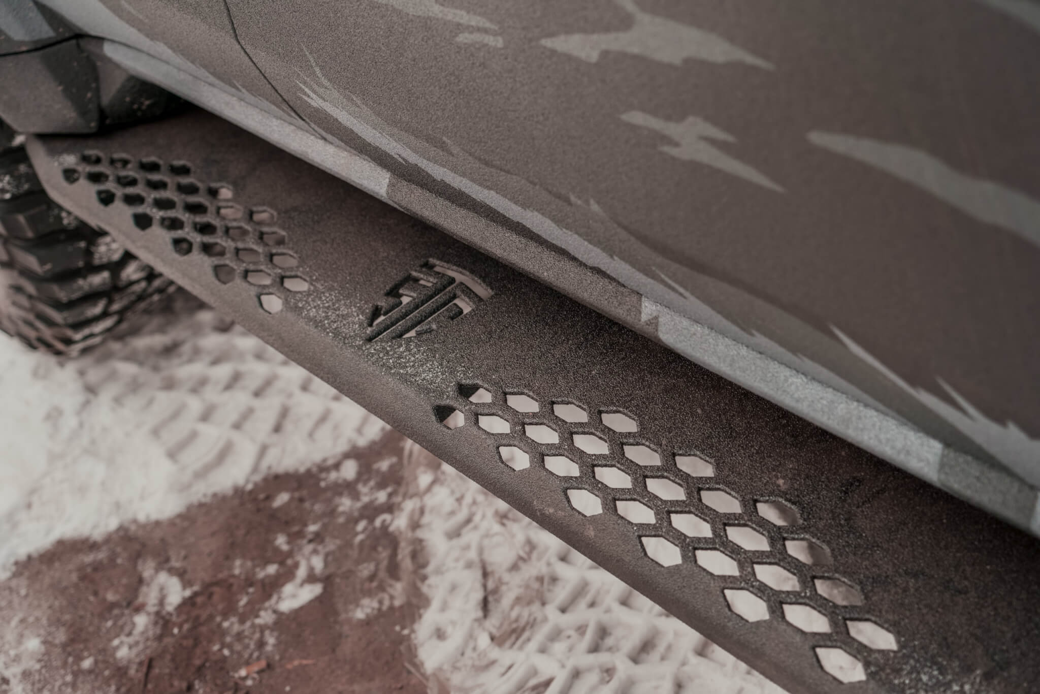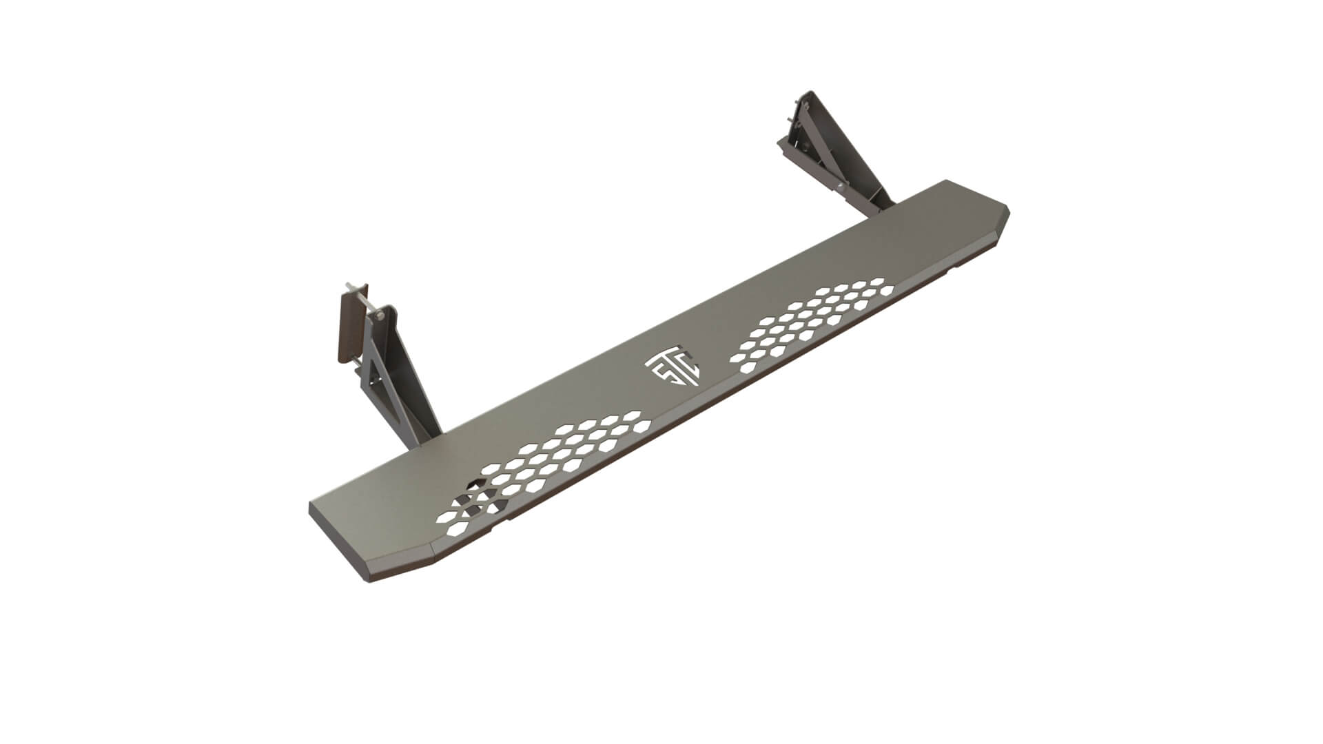 Конструкция порогов STC крайне прочна и долговечна, пороги рассчитаны на эксплуатацию в тяжелых условиях – они изготовлены из цельной стальной трубы без применения сварки. Пороги крепятся к раме с помощью кронштейнов.